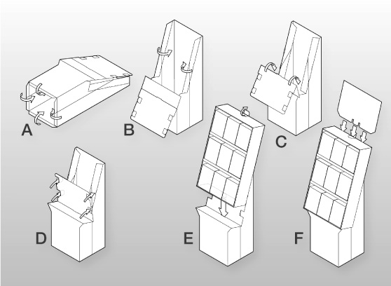 ILLUSTRATION – unverzichtbar, wenn Worte zur Erläuterung eines komplexen Vorgangs nicht ausreichen.Kunde: Ritzi GmbH Displays und ShopsystemeProjekt: Strichzeichnung Aufbauanleitung für ein Karton-DisplayAufgabe: Anleitung zum Aufbau eines Bodendisplays für Einsatz am POS